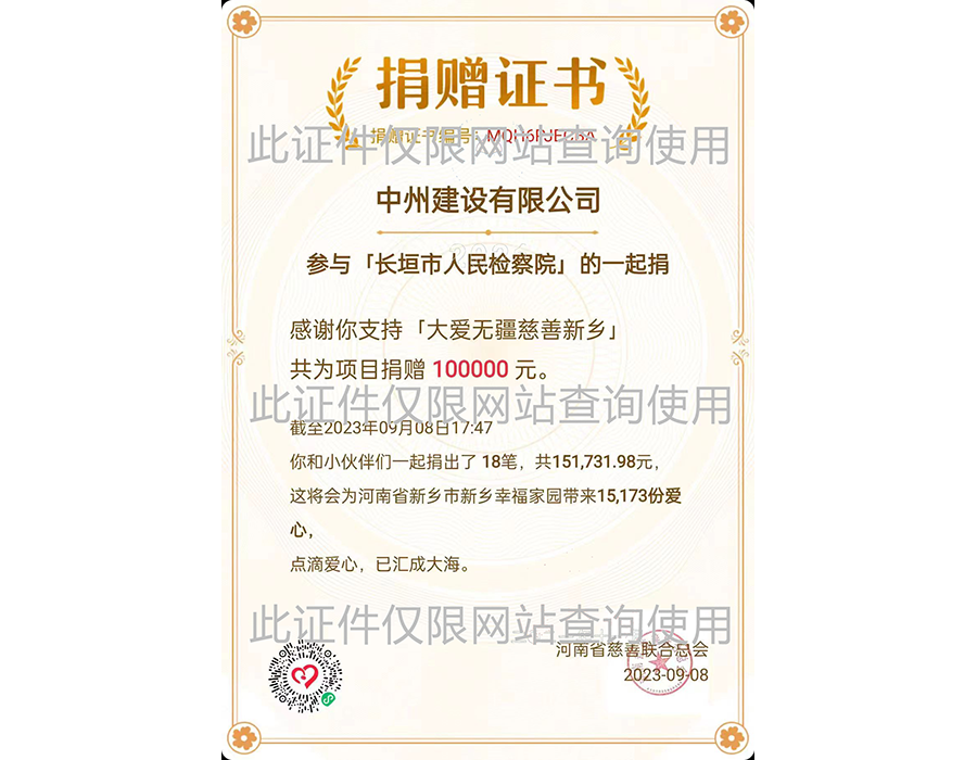 2023年河南慈善聯(lián)合會捐贈證書