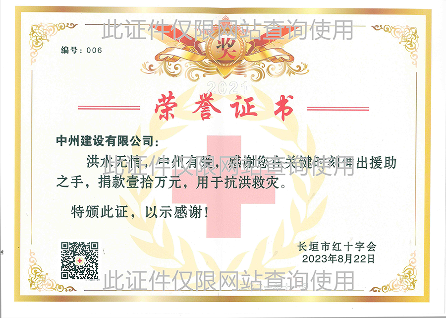2023年長垣市紅十字會捐款榮譽(yù)證書
