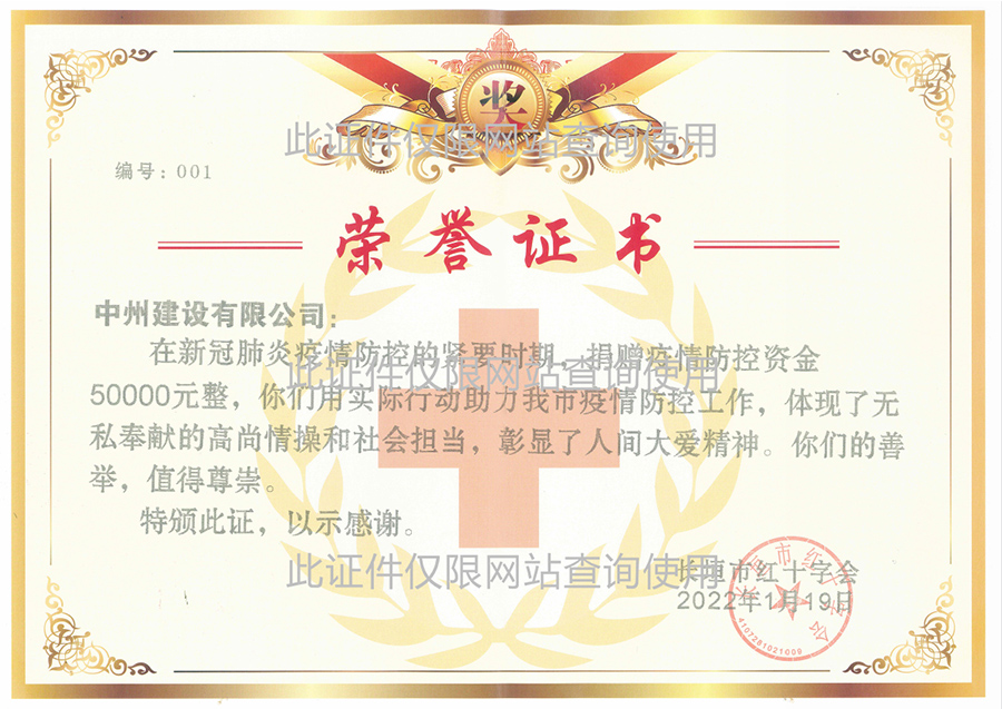 新冠肺炎捐贈5萬元榮譽證書